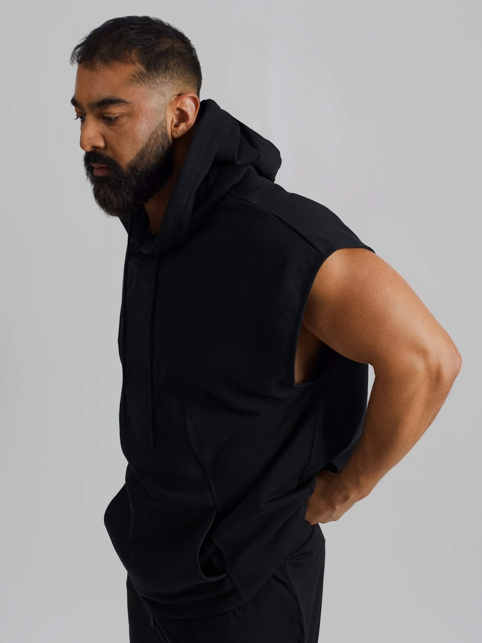 THE ZEPHYR SLEEVELESS HOODIE-BLACK